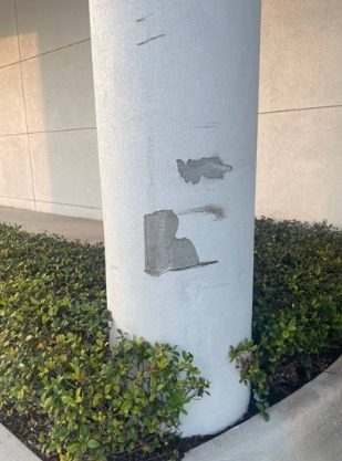 The surrounding area was masked and protected.Minor surface damage, such as small chips, dents, and hairline cracks, was identified then patching compound was precisely applied to all damaged areas.Once cured, the patched spots were carefully textured with the original column surface.