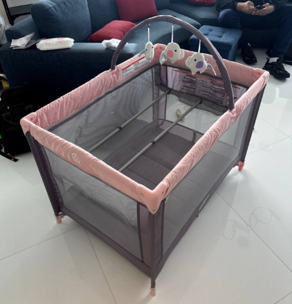- The crib was checked to confirm that all slats were intact and that there were no sharp edges or loose hardware.
