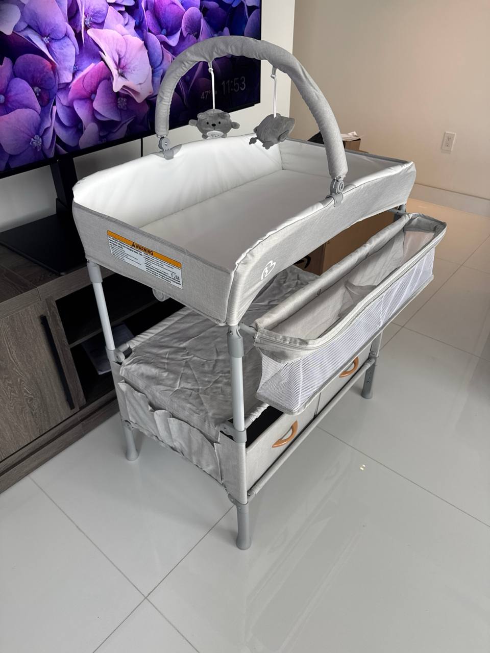 - The security rail/perimeter was attached to the top surface. All internal supports were fixed securely to ensure the table could safely bear the necessary weight. Finally, the changing pad was placed securely onto the top surface, and any safety straps were attached.Both the crib and the changing table are fully assembled, structurally sound, and secured. All components meet the manufacturer’s specifications for safety and stability. The work area was cleaned upon completion.
